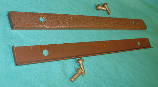Length* = 10.532" Width* = 0.872" Height* = 0.282" Nearest Hole Center from Upper Bent Side, distance* = 1.50" Farthest Hole Center from Upper Bent Side, distance* = 9.0" Hole Diameter = 0.282" Material = 20 ga. steel (.037") * "Outside Dimension" includes the thickness of the bent side NOTE: If you don't have access to a break to bend the sheet metal, it is possible to use 1" x 1" aluminum 90º angle to make something similar. The 1" x 1" aluminum angle is easily available at almost any hardware store. Use the basic measurements provided to fabricate and paint appropriately. |