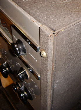![]() photo above: The Rack Mount Slot Covers for the original RCA AR-88 Series cabinet shown with the 12x24 round head machine screws for mounting photo right: The right side slot cover showing how it is mounted |