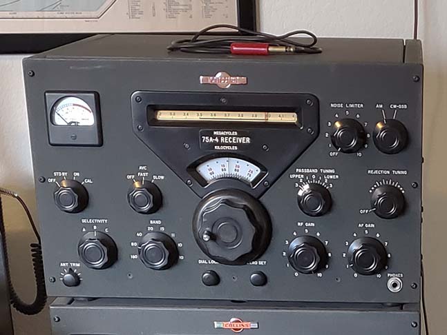 This write-up contains just a little bit of history about the KWS-1 and 75A-4 and no history about Collins Radio Company. Most of this article's written material relates my own experiences with KWS-1 SN:616 and 75A-4 SN:850. I've owned this Collins pair since 1970. A second 75A-4, SN:4470, was added in the 1990s (one of those "lucky finds.") I've included brief circuit descriptions of my equipment but, for the official "Collins-written" descriptions of the equipment along with more Collins manufacturing history, go to the Collins Collector's Association website. This write-up is more about the problems I've experienced and what I've had to do to my KWS-1 SN:616 and 75A-4 SN:850 to keep them running, albeit not continuously, for over half of a century. |
