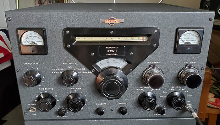 photo below. 2025 Sea Trials - I operated the KWS-1 and 75A-4 SN:850 on the Nevada Vintage Mil-Rad Net on April 6, 2025. Operation of both the receiver and the transmitter were flawless. The minimal number of check-ins, only three, made getting any detailed audio reports unlikely. Since I didn't get really any critiques, that's a good thing when running a KWS-1 on AM. Of course, everyone on the Mil-Rad net knows about how AM as SSB with reinserted carrier sounds since so many 1960s military transmitters and transceivers used that method of allowing AM to be operated with what was essentially a SSB rig. Luckily, N9AMI records the Nevada Mil-Rad Net and puts it on his youtube channel "Wavelength Radio" so I can listen to how the KWS-1 sounds out about 25 miles away. |
