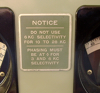 "warning" tag (not to use 6kc bandwidth on VLF) is mounted between the tuning dial and the logging dial.