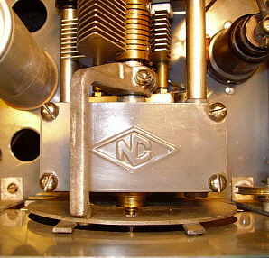 | 1936 NC-100 and NC-100X introduced in August 1936 The Art Deco Panel - Aluminum sheet metal overlay for front panel is silk screened in black and red along with silver - used on both NC-100 and NC-100X, commonly referred to as the "Art Deco Panel." This panel was only used from the initial run-D up through run-G on the NC-100 and NC-100X. A black wrinkle finish overlay replaced the Art Deco panel and the eye tube was integrated in the same manner as the NC-101X. The PW-D likely would have also been changed to the black with black number dial, the same as the NC-101X. This change probably happened during or just after run-G. Certainly, by run-J, the S-meter replaced the eye-tube and then, at the very latest, the Art Deco panel was gone for good. It was certainly not used after the replacement of the eye-tube with the S-meter (run-J or mid-1937.) The Art Deco panel was replaced for a couple of reasons. First, it was delicate and scratched very easily. Excessive rubbing would easily wear through all of the silk-screen artwork and would also wear the matte silver finish. The second reason was as an expense reduction by the consolidation of parts. The Art Deco panel was unique to the NC-100 and NC-100X and certainly the process to produce the panel (or have it produced) was more expensive than a black wrinkle paint job. It was much easier and less expensive for National to start using the NC-101X black wrinkle overlay with these types of panels which were then usable on three types of receivers. The PW-D - The initial PW-D micrometer dial used on early receivers was bluish-gray on the Index Dial and red with white numbers on the Number Dial, used on the NC-100 and possibly the very early versions of the NC-100X. Slight variations in PW-D paint color might be due to color variations in different paint mixes or due to different aging characteristics on specific PW-D dials. However, many PW-D dials were replaced over the years by owners and careless restorers so originality becomes uncertain. Generally, very early NC-100 receivers will have the bluish-gray Index Dial and red with white numerals Number dial. The NC-100X will usually have a light-gray Index dial with a black number dial with white numerals. There may be exceptions to this but, from examples seen, this PW-D difference between the NC-100 and the NC-100X seems to be consistent. Photo of 638-G (eBay) had deco panel and light gray PW-D with black number dial with white numerals - looked original. Also, NC-100X sn:48E, an original example, has a gray Index dial with a black Number dial. I don't have any data collected on whether the red number dial was used in the PW-D for the NC-100 past the first production run. Please report any NC-100 receivers in the E, F or G runs that have been found with original red number dial PW-D. Chassis is painted gray on both NC-100 and NC-100X Power transformer top cover has four large ventilation holes 6E5 cathode ray tuning eye tube is used Rack mount versions will not have aluminum overlay, panel is 3/16" aluminum with engraved markings, black wrinkle finish, eye tube used. Some versions may have single-ended audio output. Some rack mounted versions will use National-supplied rack mounting brackets that mount to the sides of the standard NC-100 table cabinet. The first NC-100 and NC-100X receivers were built in production run "D" The NC-100 was the first National Co. receiver to utilize an electrodynamic loudspeaker that had its field coil powered by the receiver's power supply. Although there were some SW-5 versions that had push-pull audio output, these receivers had to utilize a "self-powered" electrodynamic loudspeaker. These speakers had an onboard power supply just for the field coil and they were popular in the late-twenties and early-thirties. NC-101X is introduced with ham band only coverage, black PW-D on most of production, eye tube on early versions (NC-101X introduced during "E" production run, probably Oct-Nov 1936) 1937 Contracts for Airport "Communication Receiver" from Dept. of Commerce, Bureau of Air Commerce Air Navigation Division. DOC-BAC receivers are the RCD and RCE S-meter replaced eye-tube in NC-101X - changeover to S-meter seems to have occurred between runs J to L (runs six, seven or eight, or around mid-1937.) Some earlier NC-101X receivers seem to have been modified to replace the eye tube with an S-meter. Some of these upgrades were obviously rework performed at National and exhibit professional-level installations. Others appear to be "hamster" modifications. For example, NC-101X sn 247-J is a sixth production run receiver but has the later Marion Electric yellow scale S-meter installed instead of an eye-tube or the earlier white face Marion Electric meter. Since some hams sent their receivers to National for repairs or upgrades, it's possible that early production run receivers that have yellow scale S-meters may have been replacements that were installed by National during a repair. It's also possible that late-style replacement S-meters were obtained from National were installed by receiver owners. In general, on original receivers that haven't been reworked, expect to see the white face S-meters from around run J up to around run N. The yellow face S-meter should be installed on receivers from around run P up to around run Y (probably early-1938 up to 1940.) This change also affected the NC-100 and NC-100X and (at the very latest) eliminated the "Art Deco" overlay on those receivers. Power transformer top cover vent holes eliminated Installation of the S-meter switch eliminated the green pilot lamp so all S-meters were illuminated to provide a "power on" indicator. All stock S-meters were manufactured by Marion Electric. NC-80X and NC-81X AC-DC receivers introduced. Optional power transformer available to convert to AC-only operation. Also a battery-operated version was available. 1938 NC-100A and NC-100XA introduced in June 1938. New direct-read dial, articulated 