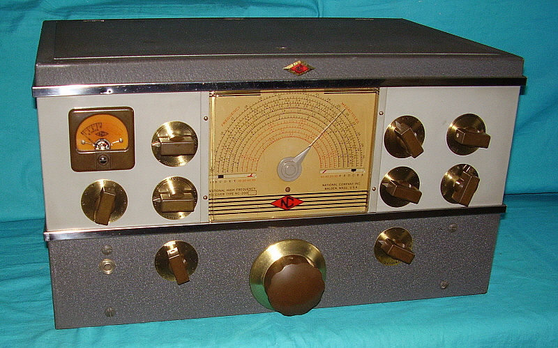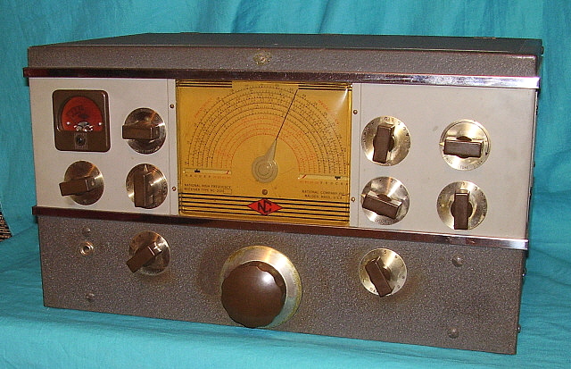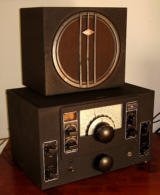Performance - The NC-200 is like having a NC-100XA receiver and a NC-101XA receiver in one package. You can use it as a ham bands-only receiver where it has great dial accuracy across each ham band. Or, just pull out the tuning knob, turn and select a general coverage band, push the knob back in and tune in your favorite SW BC or utility station. The dial accuracy is good on general coverage but the ham band spread is, of course, more accurate since the frequency span covered is smaller. Sensitivity is comparable to any of the later moving coil receivers and the crystal filter works quite well. I'm lucky to have the matching speaker for this Silver Anniversary NC-200 and the sound reproduction is impressive from the 10" PM speaker. The audio circuit uses a phase inverter rather than an interstage transformer and the reproduction seems to benefit from that change. Lots of bass from the push-pull 6V6 tubes. Great audio when listening to AM BC or to some of the better SW BC stations. Some ham AM stations also sound fabulous. The band indicator flags are very useful and help you find the desired band with this ten-band receiver. My only complaint is that the dial is practically unreadable if you want to just use the dial lamps for illumination (with #44 lamps installed!) The black scales are difficult to read and the red scales are virtually impossible to read. A desk lamp or ceiling lamp is really necessary to adequately read the dial unless you're listening during the day and the window curtains are open. As a vintage station receiver it provides ample sensitivity and admirably copes with just about any QRM. |