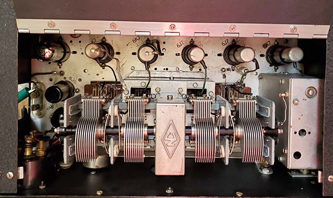 The HRO Design - The HRO was the only 1935 receiver that came with two stages of tuned RF amplification provided on all frequencies. This virtually eliminated images and later became the standard method used in single conversion superheterodynes for image reduction. The use of a plug-in coil module that shielded each coil and itself was installed into a shielded compartment assured that stray losses were not encountered. Connecting the coil set to the tuning condenser via flex finger contacts and short, direct buss wire assured that tuning losses were at the lowest possible. Efficient design of each tube stage, especially the First RF Amplifier, reduced thermal noise and increased the signal to noise ratio. These design factors allow the user to experience the best in sensitivity with low internal noise. Copying very weak signals is standard with the HRO - the signals would not even be heard on some of the other receivers of the time. The other stand-out feature was the incredible bandspread. Though only available on the ham bands 80, 40, 20 and 10 meters, it gave the user unbelievable tuning with the micrometer dial providing the equivalent of nine and a half feet of linear dial for each ham band. Tuning across the ham bands seems to go on and on - it was literally the best bandspread system available. Performance Today - What about the HRO performance today with modern QRN and QRM levels? The HRO is a very sensitive receiver capable of receiving DX signals that would be lost in the noise on other receivers. Of the many types of vintage receivers I've used over a long period of time, I have always found the HRO to be the most consistent great performer when it came to receiving weak DX signals. The HRO is the only vintage receiver that I've used that would receive Russian hams on 20M CW using just a wire antenna (Inv-Vee.) This was in the mid-1970s when most UA/UKs were not running much power and were always just above the noise, even in a then-modern receiver. Additionally, when it comes to QRM, the early HRO crystal filter is quite amazing. It is one of the few crystal filters that will eliminate QRM, even on AM phone operation. By tuning the AM signal "on the nose" with the crystal filter on you will notice just how narrow the bandwidth has become and a slight detuning will decrease the signal significantly. The same is true for CW but these days there is little CW activity, let alone CW QRM. |