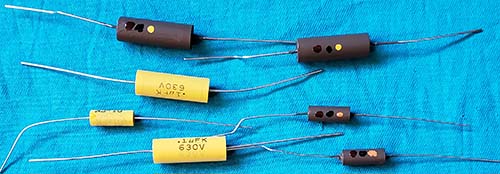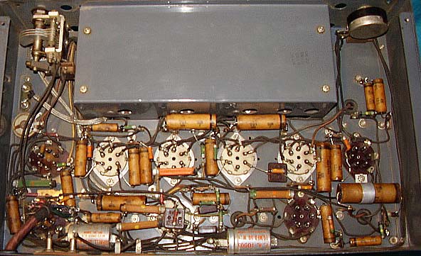 repaired I decided to go ahead with a total rebuild of the HRO. A complete re-cap job was performed on the HRO but rather than just replace capacitors with no regard for under chassis appearance, I decided to re-stuff all of the paper wax caps to preserve the original looks of the assembly. |