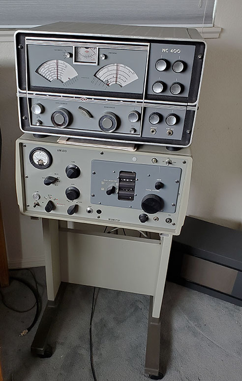 I had my NC-400 set up with the W6MIT homebrew transmitter, shown in the photo above. Though W6MIT's transmitter might be a little short on "good looks" just the opposite is true of its incredible audio quality on AM. A really stellar homebrew transmitter. At only 75 watts of carrier power, I find that using the 75M collinear array antenna is a big help. Most of the time, the "1625 Rig" with the collinear produces a good signal that is Q5 with most check-ins to the Vintage Mil-Rad Net. And, the gain of the antenna also helps with the received signals (gain is about 1.9db.) I have to admit though,...I've had this particular set-up on two different occasions and neither time did using the NC-400 result in a long-term relationship. I just couldn't wait to replace the NC-400 with a decent performing receiver. |