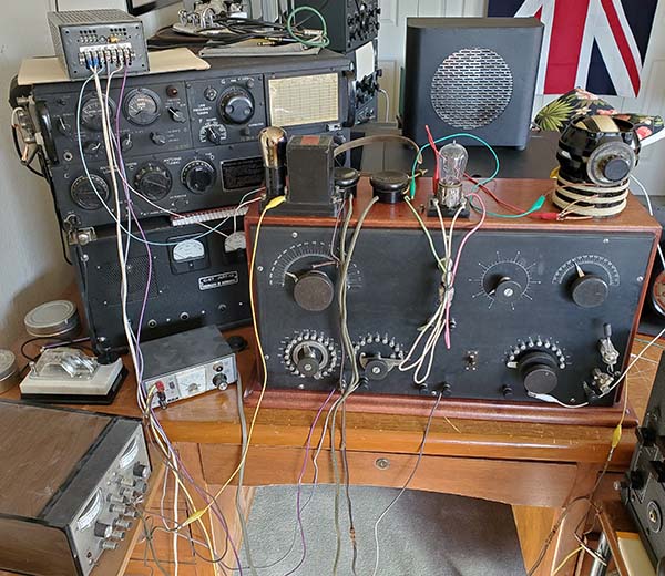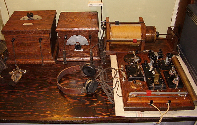 shown the operation on 1500kc would have been possible. Built After 1915? - Look at the header photo of Hiram Percy Maxim's station in 1915. He was one of the foremost hams of the time (co-founded the ARRL) and his station receiver, while using a Loose Coupler and Spherical Audion detector, is NOT a panel set but is the typical table-mounted components. I really think that looking at vintage photos of ham stations, it gives me the impression that the SARX is from 1915 or 1916 or even early-1917 for the build-date. The limit to "late date" would be the US entry into WWI in April, 1917 at which time the Navy imposed a total ban on amateur radio operations and that included any radio receiver operation. Other Indicators - The evolution of receiver design does figure prominently with 1915 seeming to be about the earliest date for the design. Lack of regeneration doesn't really seem to figure in too much since just as regeneration was beginning to become commercially available the WWI receiving ban was implemented in April 1917. Use of the "panel set" design is the most indicative of 1915 to early-1917 construction. |