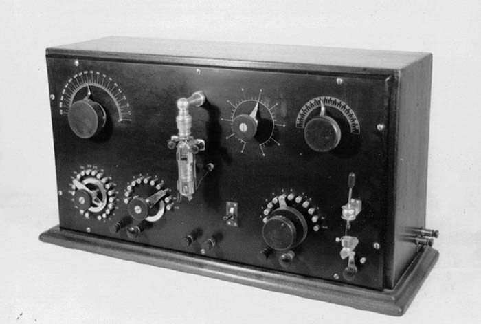 The builder of this wonderful Spherical Audion Receiver is unknown. The quality of workmanship, including the stamped number nomenclature and etched scales on the front panel along with some of the clever mechanical features, seem to indicate a professional-level of design and construction. But, does that imply a special-build product of an unknown commercial outfit? Of course, there were also some incredibly talented amateurs that were fully capable of building this receiver. Dating is just speculation,... Build Date and Users - Dating the Audion Receiver to between 1915 and 1917 was arrived at by noting that the circuit is non-regenerative. Although DeForest and Armstrong both claimed the regenerative detector invention in 1912, Armstrong was initially awarded the patent in 1914. The first commercially-built regenerative receiver was the Paragon RA-6 from 1916 but, as a counter-argument that all receivers built after 1916 used regeneration one only has to look at the WWI SCR-59 use of a non-regenerative detector (with two audio amplifiers) and most SCR-59s were built in 1918. Another indicator would be the "dead-turns" (unused sections of tapped inductors) are not grounded and that can cause losses due to stray coupling. "Dead-turns" were normally grounded after about 1917. Then there's the Spherical Audion tube itself. Although DeForest first patented the triode in 1906, it took him some time to be able to commercially manufacture them. The earliest Audions had tubular envelopes. The Spherical Audion tube was a bit later as the glass manufacturer (McCandless) suggested the spherical blub shape would be easier to produce. The Spherical Audion started to be produced in 1908. DeForest came out with the RJ-4 Audion Control Box in 1910 but was still making changes in the Audion up past 1912. Most importantly, DeForest did have a contract with the Signal Corps during WWI to supply them with Spherical Audion tubes, meaning that even in 1917, it was a tube that was still being used. DeForest ended up not being able to meet specifications and eventually the contract went to GE. >>> |