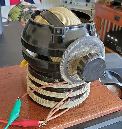 My conclusion is that 200M or 1500kc was easy to tune using this size LC. In fact, tuning down to 300kc was easy, as long as a marker signal was available. The big problems, which didn't exist pre-1922, were from powerful AM-BC stations. Selectivity is just not very good when using a loose coupler. In fact, loose couplers can't provide enough selectivity to prevent picking up local AM-BC stations at just about anywhere that the loose coupler can be tuned. But, in the pre-broadcast days, using one stage of audio amplification with the vacuum tube detector provided very strong signals and certainly would have been able to function as a ham receiver in the pre-AM-BC time period. Another conclusion from testing these loose couplers is that they certainly must have performed much better when they were new. With over 100 years of existence on the Planet, they all do have some wear, some oxidation and lots of contact problems. But, as "collectibles" we try to keep everything as original as possible. Testing the larger Murdock No. 334 Loose Coupler, I couldn't get any continuity anywhere due to the heavy tarnish and patina. This smaller Murdock No. 344 was very clean and did have continuity but still switching contacts and sliders were very noisy and sliding the secondary coil also had some minor contact problems. I wonder if tuning a loose coupler was nice and quiet when they were new?