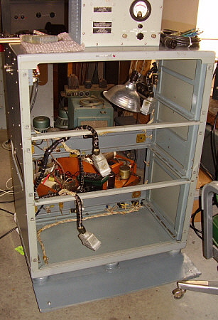 | Shipping - This is difficult to accomplish but not impossible. The T-3 has to be put on a pallet and strapped down. Then the entire transmitter is wrapped in something to protect it - usually plastic wrap. Shipping is done by freight truck which is expensive. Pick up is a much better option but requires that the transmitter be close by. Even then, at least two strong people are necessary to disassemble the transmitter for moving. Each deck should be removed and loaded followed by loading the cabinet. In this manner, two strong individuals can handle a T-3. | Reassembly - Upon getting a T-3 home, you should do your work in the area where you're going to use the transmitter, if possible. Otherwise, you'll probably have to disassemble again to move it to it's permanent location. Most T-3s will have the shock mount still installed and these sometimes have heavy-duty casters installed for easy moving. Be sure to thoroughly inspect all three decks for any obvious problems. Test all relays, test all tubes, test all transformers and chokes, inspect all cables and connectors. A thorough inspection now will save you a lot of troubleshooting later. The following are more thorough details on various inspections that are necessary. |