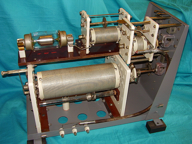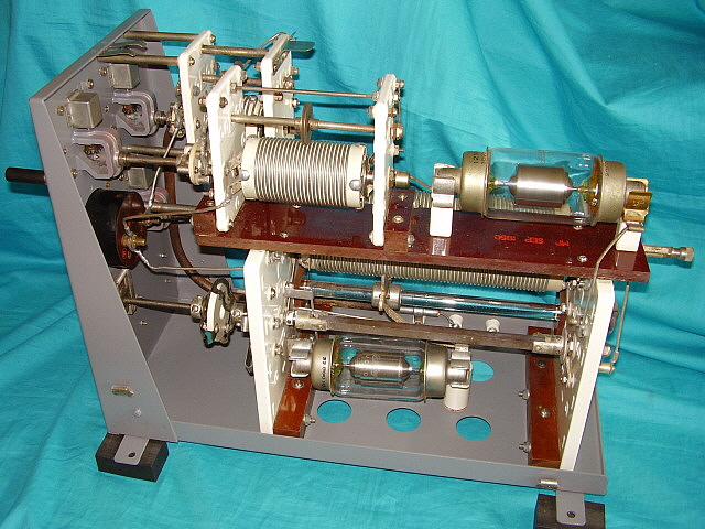 roller inductors, vacuum capacitors, clips and knife-switches make up