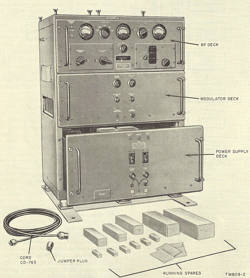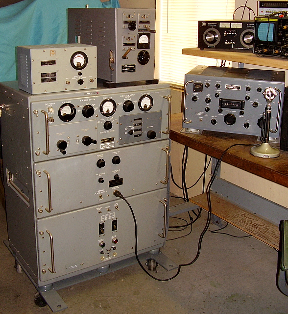 | Conclusion - The T-368 is one of the most desirable and popular military transmitters for the vintage military radio enthusiast to own and operate provided he has the necessary space for a very large and heavy transmitter. It uses a Collins' designed PTO-Exciter to drive a powerful 4-400 PA tube to maximum legal limits on DSB-AM. The transmitter's construction is probably the most robust that any ham would ever encounter. The T-368 must have cost the military a small fortune for each transmitter. With a history that starts in the very early fifties and goes well into the 1970s, the T-368 did duty in both Korea and Viet Nam, not to mention duty at all of the other military posts all over the world. Many T-368s were "trailered" around in mobile comm-huts running crypto-RTTY. A rugged life for a transmitter, even an "over-built" example like the "T-3." Today, many surviving T-3s are coasting along living the good life. More and more T-3s are being rebuilt and reconditioned for amateur service. Vintage military radio collector-enthusiasts located all around the country know and respect the T-368 as one of the best military transmitters for actual use "on the air" running AM on various types of vintage amateur radio nets. | References: 1. Signal Corps manuals TM11-809-10 for the T-368 and BC-939. TM11-5820-256-10 for info on the GRC-26D 2. Thanks to W6AQU, W6MIT, K6RAR and many others for their insight and experiences with T-368 transmitters. |