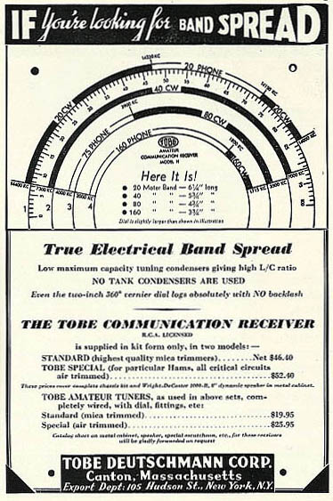 just the 160M, 80M, 40M and 20M ham bands. Tobe Deutchmann Corporation offered the "TOBE Amateur