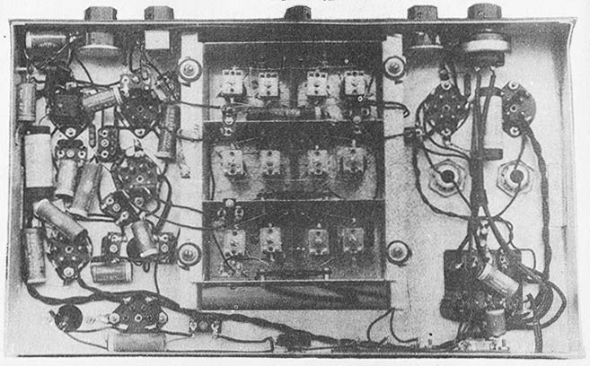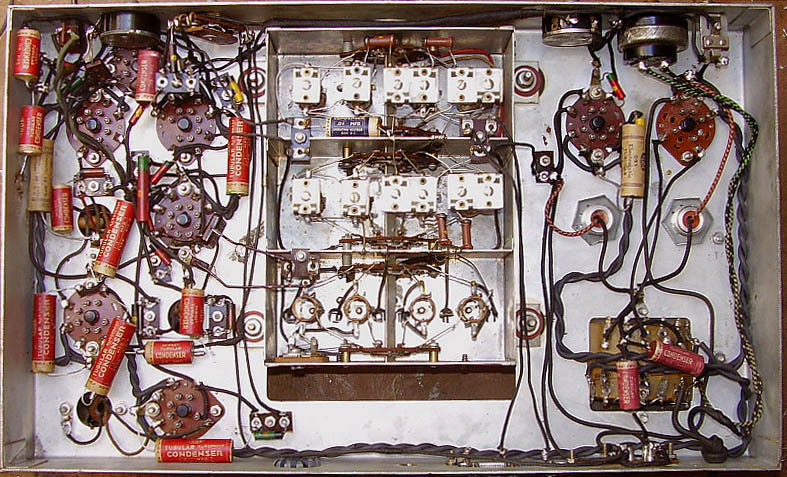 was kept within the dial indications of the ham band limits. Early versions of the TOBE Amateur Communication Receiver Model 35/H have seven large six and seven pin glass tubes. By mid-1935, an eight-tube version that employed all metal octal tubes was available as an option. Since the front-end and IF was pre-aligned, the builder had only to assemble the receiver. Tobe Deutschmann's instructions say "a few enjoyable hours" were required for assembly - a little bit of hyperbole. I've rebuilt from a "stripped out" condition two TOBE Amateur Communication Receivers and a far more realistic estimate would be at least three days working about three hours per day to do good job that's neat and correct. That's followed by a minor "touch up" alignment to the triple-tuned IF (tertiary coupled IF transformers) and to the four band front-end. >>> |