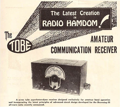 Glenn H. Browning 1935 TOBE Amateur Communication Receiver Model 35/Model H 1936 TOBE SPECIAL Amateur