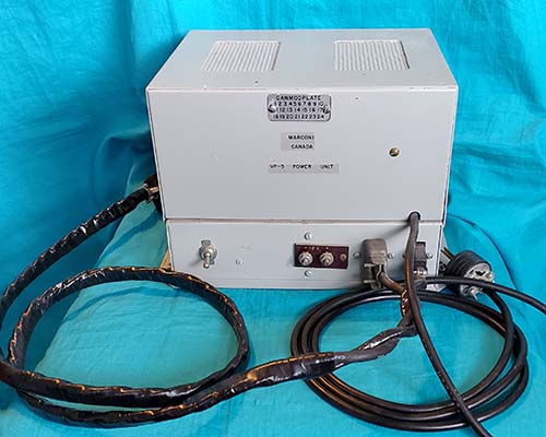 Two types of loudspeakers were available for the CSR-5. A table cabinet speaker and a dual rack mount speaker. The table speaker was an eight inch diameter speaker with a 10,000Z ohm to 8Z ohm matching transformer. The dual rack mount speaker is virtually unknown although it is pictured in the manual. It's not specified in the manual if the speakers had individual inputs (most probable) or if the speakers were connected in parallel with a single input (unlikely.) The photo to the right shows two CSR-5A receivers installed onboard the RCN ship Athabaskan in the early 1950s. Note the Marconi loudspeakers mounted on the bulkhead above the receivers. These are the standard table speakers that were available for the CSR-5/A receivers. Also, note in this installation how the shock mount feet are mounted directly to the underneath of the cabinet on the receivers. This certainly simplifies the shock mount installation and reduced the width of the receiver when compared to the width if the standard shock mount brackets were installed. The receiver in the center of the equipment is a version of the RAK made by RCA-Montreal, the TE236, that was used to monitor 500kc (although it tunes 15kc to 600kc.) The CSR-5 and 5A are found in a variety of different paint colors with the most common original color found being a wrinkle finish, light cream color with a slight greenish tint. Smooth finish gloss medium gray is found when the receiver was part of the CM-11 transmitter-receiver rack system. Light brownish-gray (beige) wrinkle finish is common in the stand-alone receivers. Many different shades of gray are often encountered and occasionally black wrinkle finish might be seen. Dark bluish-gray was also used at times. Along with the different colors, shades and texture variations will be found both black or white nomenclature (depending on the panel color used.) Some paint combinations are original but most of the really unusual variations might be from post-WWII military repaint jobs but, more often are from recent amateur restoration attempts where authenticity wasn't a primary consideration. Contemporary restorations involving repainting have to deal with the silk-screened nomenclature which usually complicates any refinishing plans. My CSR-5 SN:394 doesn't have the "Marconi" cursive script along with "CANADA CSR-5" in block letters silk-screened on the center area of the escutcheon. Originally, the CSR-5 did have the silk-screened lettering on the dial escutcheon but, when receivers were refinished by RCN depots in the 1950s and 60s, many escutcheons were painted and usually lettering was silk-screened. But, if the silk-screening was done at a depot, whether the receiver was a CSR-5 or a CSR-5A, the escutcheon was (always?) screened as "CSR-5A." All "block letters" were used without the "Marconi" cursive script. I didn't have any method to do an authentic lettering job and, since there seem to be some "non-lettered" RCN depot precedents, I left my escutcheon without lettering. |