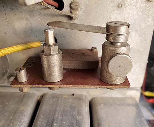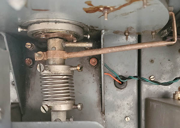 Oct. 29, 2020 - Workbench Revisit - After using the C.R. 300/1 as a station receiver for about one month, a few minor problems required returning the receiver to the workbench for further "tuning up." The return work was going to require some disassembly mostly involving cabinet and bottom cover removal (and front panel dismount later in the "revisit.") Installation of Tube Socket Shroud/Shield for DH63 - The first problem was mechanical because I had replaced the metal 6Q7 tube with the proper DH63 glass tube and that now required installing the correct tube socket shroud and tube shield. These parts had been removed years ago when the 6Q7 was installed. Installation was just a matter of tube socket screw removal, installing a correct style shroud and then reinstalling the screws. LF Gain Pot Problem - The second problem was a noisy AF Gain control (LF Gain) that seemed to be more intense since installing the DH63 (more info on this tube's performance, or lack of, in "DH63 Problem" below.) Access to the LF Gain pot was easy. I removed its back cover and cleaned with a DeOxit dampened Q-tip. The pot was reassembled and remounted. Band Switch Problem - Third problem was that I had to "rock" the band switch on Bands 6 and 7 to get full sensitivity. I hadn't cleaned the band switch, so that was done using a small paint brush and DeOxit. When doing the cleaning I discovered that the RF/ANT section bandswitch mounting screws were extremely loose. Both mounting screws required considerable tightening to have the switch always "inline" and to not move around when the bandswitch was operated. All of the other Bandswitch mounting screws were tight. The RF/ANT switch movement probably resulted in the misalignment in position 6 and 7 which the "rocking" of the Bandswitch knob would get the loose switch into the proper position. The IF band switch and the Passband switch were also cleaned. Re-Alignment of the RF Tracking - Since I had changed the RF amp tube from a KTW61 to the proper ARTH2, I performed a second complete RF tracking alignment. Since the installation of the ARTH2 improved the high frequency sensitivity so much I thought that the tube must have slightly different characteristics and a RF tracking alignment might show more improvement. Also, the first alignment was just a "quickie" - kind of a "roughed-in" alignment to make sure everything worked okay. I had used the slide rule frequency dial settings for tracking and that dial doesn't have any accuracy at all (even the manual states that the slide rule frequency dial is just for "reference.") The manual provides exact frequencies that correlate to 23.00 on the logging dial for the low end and 1.00 on the high end for each of the eight bands. To align the tracking accurately one has to use the logging dial since that is mechanically driven along with the tuning condenser. One has to use a 200pf dummy antenna load between the receiver and the signal generator on Bands 1, 2, 3 and 4. On Bands 5, 6, 7 and 8 a 100 ohm CC resistor is used for the dummy antenna load. The tracking adjustments were off by quite a bit, probably because of the way I did the initial alignment (a "quickie" alignment.) After alignment, I've noticed that the relationship of the logging dial/f versus the slide rule dial indication is that the upper and lower ends of the slide rule dial are off at the specified logging dial numbers but the majority of the slide rule dial indication is relatively accurate. RF/Ant Coil #8 Problem - Another problem found while doing the alignment was that the RF/ANT adjustments wouldn't work on BAND 8. I found that one of the terminals on coil #8 had three different wires "wrapped and stacked" but the bottom wire in the stack wasn't soldered. I cleaned the non-soldered wire and then flowed new solder on the entire joint. Afterwards BAND 8 RF/ANT adjustments worked and could be aligned (and they were.) This improved BAND 8 sensitivity noticeably since before the RF/ANT coil wasn't "tuned." It's probable that this connection had been unsoldered since the receiver was built and the function of BAND 8 had relied on the wrapped mechanical connection but with decades of minor oxidation and dirt accumulation that mechanical connection had become non-conductive. HF Gain Pot Problem - The HF Gain pot had been giving erratic contact at the the top end of travel. Since the LF Gain pot cleaning had turned out so well I decided to do the same to the HF Gain pot. After dismounting the pot and removing the back cover an inspection revealed some surface cracking on the carbon element near end of travel. I cleaned the element and reinstalled the pot then set-up a temporary operation of the receiver which showed that the HF Gain still had a problem. Replacement of the HF Gain pot was unfortunately necessary. The junk box provided a very close look-alike 10K pot that was installed which corrected the HF Gain adjustment problems. The Front panel had to be dismounted for the HF Gain pot work so at this time I also lubed the IF switch cam with viscous grease. DH63 Problem - It was noted that when the receiver was connected to the station antenna the CW sensitivity seemed okay but when the BFO was switched off for AM reception the background noise totally disappeared and only very strong signals could be heard and they were badly distorted. This problem had developed while the receiver was on the workbench and it seemed to progressively get worse each time the receiver was operated. While I had thought the DH63 was a good tube (after all, it was sold as "used-tested good,") I replaced the DH63 with a glass 6Q7G. With the 6Q7G installed, the AM reception then had the usual background noise and sensitivity in both CW or AM was "back to normal." DH63 tubes have to be purchased from the UK and all examples that I've seen for sale are in "used-tested good" condition. I'm sure that this DH63 "tests good" but tube operation in a tube tester is usually just long enoug