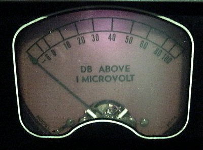 ![]() photo above: Original RCA component AR-88 CL Meter from EB5AVG's AR-88D receiver. This is the RCA meter and shows the -6 to 0 to +100db scale with the "DB ABOVE 1 MICROVOLT" indication. The meter scale was originally a pale tan to light yellowish color. Most scales have darkened considerably from the original color. Photo by: EB5AVG |