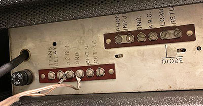 | The Diversity IF Gain Control - This control is normally only on the component receivers used in the RCA Triple Diversity Receivers - the DR-89, the Navy RDM and the Signal Corps OA-58A/FRC. This control adjusts the gain through the IF section of the receivers by using a variable resistance in the cathode circuit of the 1st and 2nd IF amplifiers. The Diversity IF Gain control allowed the operator to "balance" the three receivers in the rack using a test signal (usually the incoming signal.) Once adjusted, each of the three receivers responding with the same gain to the same signal which further enhanced the diversity effect. When the receivers are operated individually, the Diversity IF Gain can be advanced fully. Apparently, later in production, the Diversity receivers were sometimes sold as individual receiver to certain customers. Consequently, some Diversity receivers might be found mounted in the proper RCA AR-88 cabinet as an original combination. | Diversity, Monitor, Diode Load and Diode Return Connections - These connections on the rear terminal strip are only on the component receivers of the RCA Triple Diversity Receivers. When operating in diversity, it is necessary to have all of the second detectors outputs tied together which is done through the "Diode Load" and "Diode Return" connections. Additionally, the AVC lines from each receiver are tied together via the "Diversity" terminal. These receivers can be operated as a stand-alone receiver but it will be necessary to jumper the "Diode Load" and "Diode Return" terminals together. No connections to the "Diversity" terminal or the "Monitor" output are necessary for individual receiver operation. |