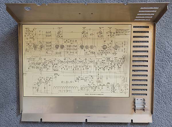 I found this pencil note under the top cover about where the center wing-nut notch is. An unexpected notation and one that adds slightly to the concerns about the correct identification of the receiver. Of course, it's not a Collins-official notation. It might have been an erroneous assumption made from referencing the schematic title. Unofficial notations maybe interesting but can't be relied upon as accurate information.