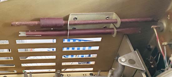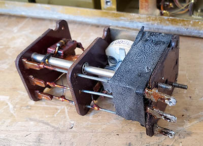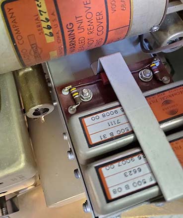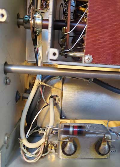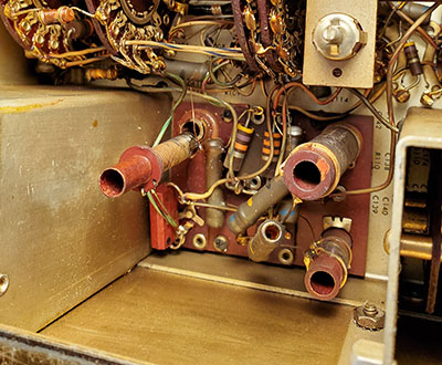 This shows that the PTO installation in SN:1999 appears to be original to the receiver, note the lacing that appears to be as original. The wire wraps on the terminals are perfect and the soldering is at a professional level. The solder joints don't appear to have been disturbed since the original work was performed. |