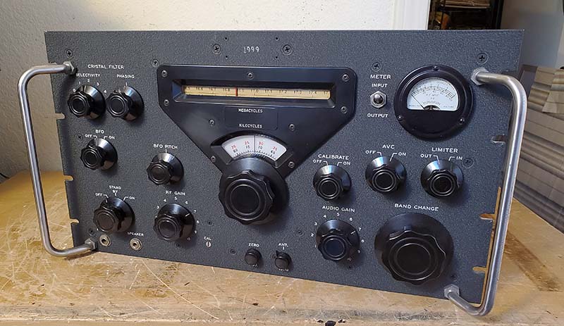 relief is a Heyco 6T.) photo left: The R-388 "basket case" immediately after restoration (Oct 2013.) Those aren't the correct grab handles. The meter is a Marion Electric field replacement. See below for updated photo of this receiver |