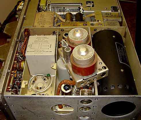 photo left: This is the upper deck of the R-392. The modules are the RF Module that has all of the RF transformers, the tuning slug racks and