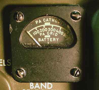 have sufficient length to connect the meters back into the circuit. Chances are after you've found a T-195, you'll begin to look for the meters. The AUDIO LEVEL meter is easy to find because it is exactly the same meter used as the LINE LEVEL meter in the R-390A receiver. These show up with some regularity on eBay. The T-195 TEST METER is a different story, however. Though this meter is the same style as those used in the R-390A, it has a unique scale only found on the T-195 TEST METER meter. You can look for the original type meter but it will be a long search. It's easier to modify a meter of the correct style to replace the TEST METER. A scale can be made as an overlay and it can be based on the drawings of the meter in the manual or by looking at the photo to the right. Be careful in selecting the replacement meter. There are examples available of the correct style of meter that won't have the radium scales or needles and these are the type to find since you'll be disassembling the meter for the new scale. Special tools make meter disassembly easy and if you don't have them you'll have to be very careful not to damage the meter during disassembly. As to FS current, most meters are around 0.8mA FS but it does vary. You'll have to do some testing of prospective meters. When installed in a working T-195, the TEST METER will show the input DC voltage level (BATTERY) at mid-scale with +28vdc input voltage to the T-195. This would be a good test for a prospective meter. The PA GRID current will usually show well over 200 on the scale when the Exciter is aligned and PA CATHODE current will show around 300 on the scale when the transmitter is loaded. Readings called out in the manual are not specific and just say the reading should be "over" a certain level on the meter. |