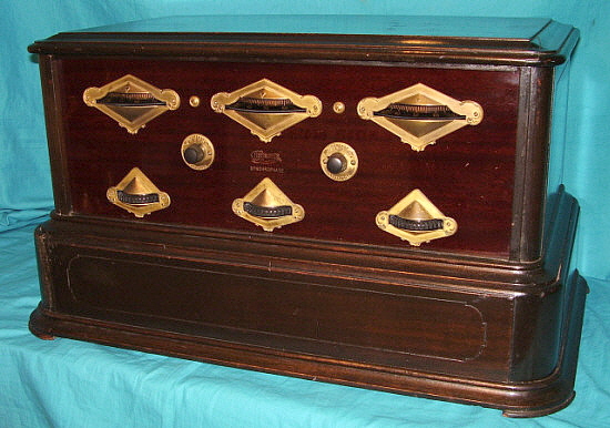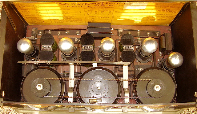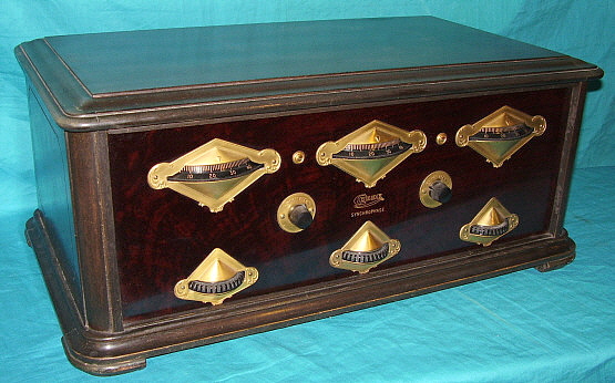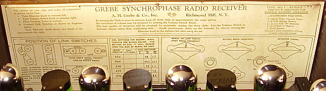 By 1924, there were hundreds and hundreds of companies building radios. Many of the radios produced were basic designs that functioned adequately but were not innovative since the companies were small owner-engineer operated concerns that didn't have the financial ability to become competitive. Grebe however was already a major manufacturer and, in early 1924, it was decided that a radio specifically designed for Broadcast reception was something the company should provide to the radio enthusiasts. The Synchrophase was born out of Broadcast Boom but was really not marketed during that period which ended around the beginning of 1924. By mid-1924, radio buyers wanted great performance and easy operation. Grebe had some top engineers that designed a receiver that was made up of innovative components rather than a special circuit. Grebe components were built at the factory. They had their own bakelite molding facilities, their own screw machines, plating facilities, everything required to build first-class equipment. The new Synchrophase's mechanical superiority was due to the experienced manufacturing ability of the Grebe company. Then there was the styling. The Synchrophase had to look like no other radio. Grebe went for mounting the tuning condensers facing upwards with "on edge" dials that were surrounded by dull 24K gold covered and lacquered diamond-shaped escutcheons (early models only.) When mounted on the faux grained dark red mahogany bakelite panel the effect was mildly Oriental in style but certainly striking and looked like no other radio on the market. Finally, there was the performance. The new Synchrophase literally was the best performing non-superheterodyne radio available in 1924. It was one of a few TRF designs that could complete with the Westinghouse-GE-RCA superhet receivers. Amazingly sensitive and very selective, easy to operate and incredibly good looking - all for $155. The Synchophase was so popular, it was available from around August 1924 up to the summer of 1927. Production estimates of over 150,000 Synchrophase MU-1 and MU-2 receivers built during that period really aren't confirmed and the number of possible serial letter combinations used don't allow for that many serial letters unless letter combos were reused during different production runs. So far, no repeated letter combos have been reported. |