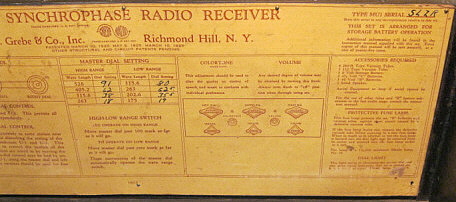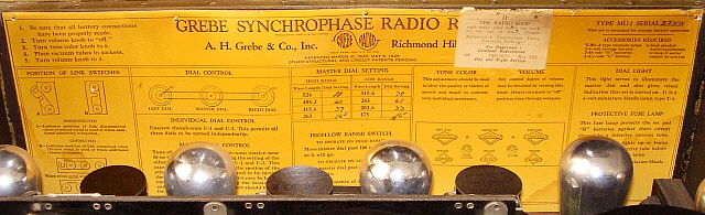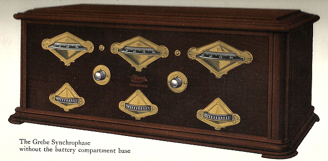 40, from complications following surgery. Without a doubt, the most often seen Grebe radio produced is the Synchrophase MU-1. A tremendous quantity of receivers were produced between mid-1924 and mid-1927. It's a good example to represent Grebe, a company that could stay competitive throughout the twenties when radios were being produced and sold in incredible quantities by hundreds and hundreds of different manufacturers. Great performance and great looks,...that's the Grebe Synchrophase. |