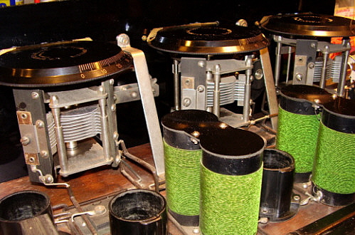 TEST - During the daytime, only local stations can be tuned in but these consist of powerhouse 50KW stations in Reno or a 10KW station in Carson City that are very strong as easy to tune in. Weaker daytime stations might be the two AM stations in Fallon about 60 miles away. These are still easy to find and tune in properly. Nighttime operation is full of strong signals and the need for the Neutrodyne TRF circuit is realized when trying to separate these signals. CTPB does a fine job and there are two good tests in our area. First is to separate KKOH 780kc from KKOB 770kc. This is an extremely difficult test as KKOH runs 50KW and KKOB is in Albuquerque, NM. While I can receive KKOB fine, I can't entirely eliminate KKOH. The second test is to separate KPLY 630kc in Reno from KFI 640kc in Los Angeles, CA. This is an easier test (because KPLY isn't running 50KW) and the MU-1 separates these two stations with ease. What is noticed in tuning the MU-1 is just how selective the two RF stages are with stations peaking at plus or minus one division. On the other hand the Detector tuning seems broad compared to the sharp selectivity of the RF stages but this is typical of most battery-era Neutrodynes. What is obvious when comparing the MU-1 to other TRF battery radios is the effect of the S-L-F tuning condensers. >>> |