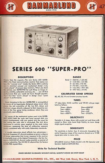 versions of the Hammarlund SP-600 are legend. Over 50 molded tubular,