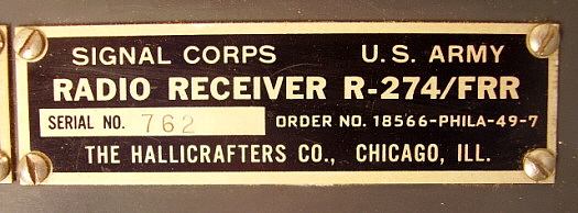 I did!) If you like a receiver with a military, Spartan-like appearance that also has great sensitivity and the ability to cope with almost any type of QRM. If you want a military receiver that produces "non-military" audio, that is, really "enjoyable-to-listen-to" audio. If you want a Super Pro that's different from the commonly-seen SP-600 Super Pro, then you might want to consider the Signal Corps/Hallicrafters R-274/FRR. Hallicrafters really did go "all out" on this receiver and it ISN'T your typical Hallicrafters in construction or design. In my opinion, the Signal Corps was the primary designer of the R-274/FRR, but this receiver certainly was Hallicrafters' best-effort at a "cost no object" build that unfortunately wasn't favored by its creator, the Signal Corps. The reasons are obvious to R-274 owners. The receiver was "old technology" that worked very well but was still not up to what was becoming available from Collins in the form of the 51J Series or R-390/R-390A. By the last R-274 contract, in 1952, the Signal Corps couldn't justify buying any more of their late-forties creation. Hallicrafters began offering them as the SX-73 but the receiver ended-up being way too expensive for the commercial and ham market. The R-274 is a wonderful receiver that admirably reflects the design thoughts for a specific function (accurate RTTY reception) and the production capabilities that were available in the late-forties. Luckily, enough of the R-274 receivers were built and have survived that nowadays it isn't too difficult to find good-condition examples for sale from time to time. |