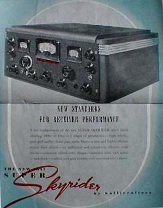 The circuit utilized 15 tubes in a double preselection front-end on the top four bands and single preselection on the lower two bands. The frequency coverage was .55 to 43MC in six bands. Dual AVC systems with both delayed AVC and amplified AVC, Lamb Noise Silencer, Calibrated bandspread, Push-Pull Audio were some of the features incorporated into the design. The SX-28 would become an all-time ham favorite, famous for incredible audio coupled with amazing sensitivity, stability and selectivity - all at a reasonable selling price. Shown to the right are pages two, three and four of the multi-page advertisement in July 1940 QST that announced the SX-28. Page one of the ad states that the SX-28 was ",...mechanically and electrically designed by twelve engineers in our own laboratories." It further states that an exhaustive analysis of more than 600 requested reports, including input from government engineers were used for developing the performance specifications. Typical of a new product advertisement, conceptual artwork is used rather than actual photographs. Oddly, the ad states that the Super Skyrider is a 14 tube receiver but this is more than likely just an error from the advertising department. |