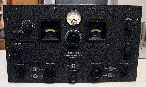Here are some photos of Hammarlund Super-Pro receivers that belong to collectors, hams and other Super-Pro enthusiasts. Interesting variations, extra nice condition, rare models, etc. Send in your photos with your comments on your receiver's performance, its acquisition or on your restoration. E-mail to: WHRM - SUPER PRO PHOTOS |