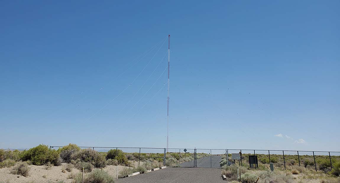 Terrestrial-Based Navigation Radio Signals - Loran-C (decommissioned and replaced with Loran-E) - All Loran-C stations used to transmit on 100kc. The Loran-C signal consisted of a precisely timed series of rapid pulses that both identified the station (as Master or Slave) and also allowed all Loran transmitters to be on 100kc simultaneously. The timing was critical and controlled by cesium-atomic clocks at each station. The shipboard navigation receivers were capable of identifying Master from Slave stations and designed to time the propagation delay based on "knowing" precisely when the pulses were sent and "timing" when they were received. Using the Master signal plus one or more Slave signals allowed the ship's navigation receiver to triangulate the wave fronts and determine their intersection point and the ship's position with an accuracy of around 50 feet which, in the ocean, was pretty close. All Loran-C stations were shutdown in 2010 in what was mainly a political move that eliminated the last terrestrial-based, long-distance navigation system in favor of satellite-based GPS navigation. After the 2010 shutdown, technological advances that made powerful personal computers inexpensive along with advanced computer software used by the determined and continuously improving hacking abilities of certain countries all started to have an effect the accuracy of GPS. Depending on the hackers' ability and equipment, the normally weak GPS signals could be interrupted, corrupted or deliberate errors introduced, all with the end result that navigation of large ships could be compromised causing shipping delays and possibly major accidents,...all due to misinformation from the hacked GPS signal causing, at the least, nuisances and, at the worst, catastrophic results. South Korea, in 2019, backed up their GPS capabilities by restarting their Loran navigation stations up again due to attempts by North Korea to disrupt South Korean GPS users. Though GPS would be the primary navigation source, Loran would be available to "cross-check" questionable GPS data or it could be used just as a "double-check." Since about 2015, the USA has been working on a new updated type-E Loran terrestrial based nav-signal as a backup to GPS. Loran-E would use the same equipment, transmitter, antenna system and other support equipment that Loran-C did. The high-power signal would be difficult, if not impossible, to "jam" or "interfere with" since so much power would be required by the "jammer." At the bottom of this page is a 2007 photo-tour of "Master of the Pacific" Loran-C Station "M" located in Fallon, Nevada. Also, added 6-23-2021, update on Loran-E, the designated replacement for Loran-C and new Fallon Master Station antenna photos. UPDATE: July 30, 2024 - Loran-E is now operational out of Fallon, Nevada - 400KW on 100kc - There was some testing being done and that started last year. July 30, 2024 is the first time that I've heard the Loran-E signal coming from Fallon. The Loran-E signal sounds very similar to the old Loran-C but with a noticeably faster pulse-rate. The signal now has an extra pulse added that contains other data that enhances the information to go along with the standard pulses that comprised the old Loran-C. In fact, the new Loran-E is compatible with the old Loran-C receiving gear which can still be used. The new extra data can't be decoded if the older gear is used but the navigational information still works. The Loran-E coming out of Fallon is extremely strong on 100kc, after all, it's only 50 miles east of Dayton Valley. Apparently, the new Loran-E is using the old Loran-C Megapulse 400KW transmitter and, of course, the 625 foot vertical antenna with 900ft diameter C-hat.