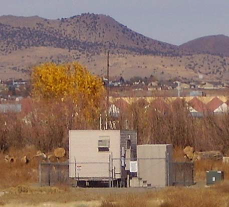 351 Khz - Reno, Nevada - NDB for Reno-Tahoe International Airport Located on 351 KC is the NDB for Reno-Tahoe International Airport. "NO" runs 25 watts and is a marker beacon physically located at the north end of the airport, in an empty lot, across the street (Mill Street) from the beginning of runway 16R. The antenna is only about 15 feet of vertical radiator with a capacity hat that is about 15 feet off the ground and about 150 feet long. The capacity hat is strung between two "not very tall" telephone poles. The transmitter and climate control equipment are located in and around a small building below the center of the capacity hat. The feed actually enters on the west side of the building through an underground conduit. Coverage is quite good considering the low power of the transmitter and the small antenna. Since "NO" is a marker beacon, it usually isn't listed on any of the NAV-AID sites - but it is operating 24 hrs a day, on 351 KC. About once a year, "NO" is "off the air" for a period of 2-3 weeks. Whether this is due to failures or scheduled maintenance is not known - the signal always seems to return after a few weeks. "OFF THE AIR" NO has been off the air for over three months now. This is the longest shutdown yet. Hopefully, NO will return to the air pretty soon. When in Reno last (end of Oct.2013) I drove over to Mill St. to look at the NO site. Everything is still there, the shack, the antenna. Everything appears normal but as of November 7, 2013, NO is still OTA. No change as of July 1, 2014. Consider NO "Off The Air." See updated photo lower right. NOTE: As far as I can tell, "NO" was the last operational NBD in Nevada. The "NO" call was derived from "RNO" which was call of the Radio Range Beacon for Hubbard Air Field on 354kc. After the Radio Range Beacons were retired, the NDB "SPK" on 251kc took over at what then had become the Reno Airport (and later Reno-Cannon AP.) When "SPK" was decommissioned, "NO" on 351KC came on and operated as the NDB for Reno-Tahoe Int'l AP from the 1980s up to 2013. With all of the name changes, the post-WWII airport was basically always in the same general location,...as far east a you can go in Reno and not be in Sparks. (Blanch Airfield was located in SW Reno in the late-1920s and early-1930s.) |
