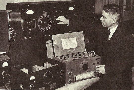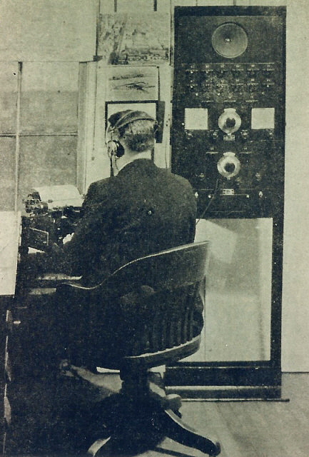 photo right: Airways Radio Range Station showing the RHM receiver and below it, the RIO receiver. This photo is from Aeronautic Radio Bulletin No. 27 published in July, 1937 by the Dept. of Commerce-Bureau of Air Commerce. |