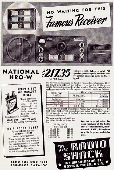 1947 Artwork for the HRO-7T and the MCR 8" Loudspeaker is shown to the right |