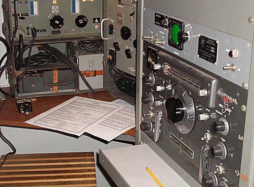 The transmitters were 5KW output and operated in RTTY or CW Morse modes. The receivers chosen for the stations were first (earliest) the HRO-50R and by the late-fifties, the HRO-60R. Most of the receivers were installed in pairs to operate in space diversity. Since RTTY was the main mode used, increased receiver stability was necessary. The frequency stability was provided by external synthesizers, the Philips Impulse Governed Oscillator, the IGO. Main communications routes usually had 2 or 3 circuits. Branch communications routes had only 1 circuit. Most of the equipment was high-maintenance in nature and, in reality, the system had very low usage. The system was decommissioned in the late-seventies. The fate or even the disbursement of the equipment was an unknown until one complete station was discovered intact in the 1990s. The equipment from that station was put into a museum in Sweden and a portion of the equipment is shown in the photo to the right. Thanks to Karl-Arne Markstrom SMØAOM for this information (and the photograph) that reveals an interesting use of the National HRO-50/60 receivers. |