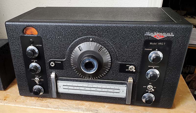 The final evolution of tube-type HRO receivers was introduced in 1953 - the HRO-60. With 18 tubes, double conversion and a current regulator on the oscillators, it was the final evolution of the tube-type HRO. Double conversion was utilized above 7MC when using coil sets B and A or any of the A prefix bandspread coils available. Bandspreaded 40M required the C coil set which wasn't double conversion. The HRO-60 accessories included coil sets J, H, G, E and F, providing general coverage from 50kc to 430kc and 480kc up to 2.0mc. Additionally, an AC coil set provided bandspreaded 15 meter coverage. AD covered 6 meters. There were two other "A prefix" coil sets, the AA and the AB, both of which bandspreaded in the 27mc up to 35mc ranges. There was also an ADX coil that covered 35mc to 50mc. The HRO-60 was available from 1953 up to about 1964. At the end of production, the selling price had escalated to an unimaginable $745.00! And, if $745 in 1964 dollars is equated to 2024 dollars the HRO-60 price would be $7400! Wow! As with all of the HRO receivers, rack mount versions were available that featured a 30" tall table rack that allowed mounting of a coil storage unit and a rack mounted speaker. These rack mounted speakers with coil storage were available as early as with the HRO Senior receivers and, with the introduction of the HRO-50, the type SC-2 coil storage and speaker combination became available. Special "dust covers" were installed on these later rack-mount receivers that fit over the side panels and are held in place with two knurled thumb-screws. The HRO-60R is only labeled as HRO "Sixty" with no specification as to its rack mount construction (the same is true for the table cabinet.) It doesn't seem that National used the traditional "C" suffix to identify the HRO-60R/SC-2/MRR-2 combo or that they even advertised it as available (I'm using the traditional "C" suffix since it does positively identify the HRO-60R/SC-2/MRR-2 combo.)