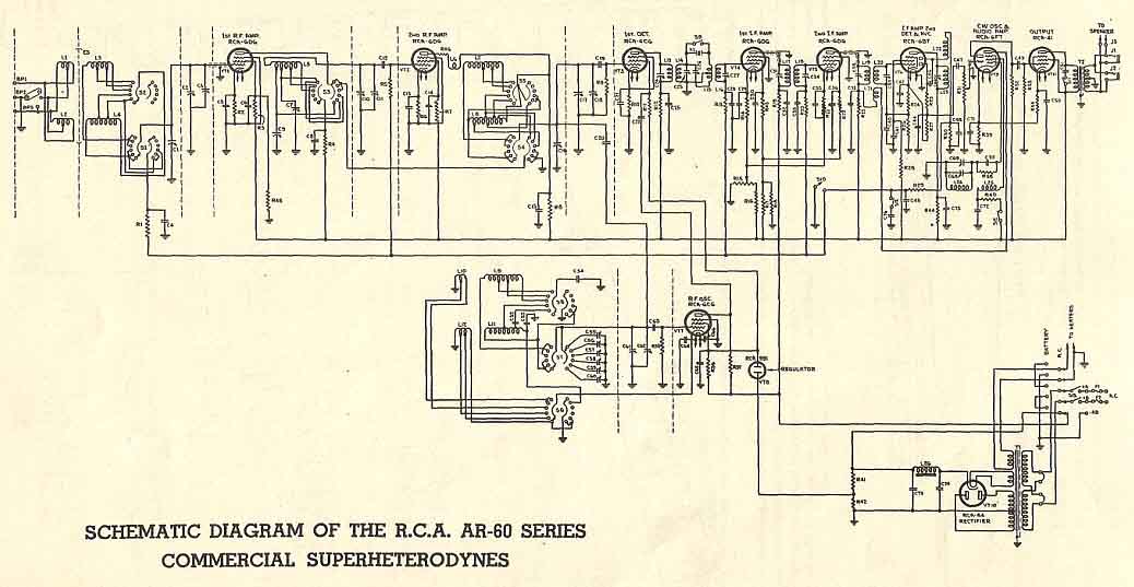and an 84 rectifier tube. Ten tubes are used in the AR-60 and a 991 neon