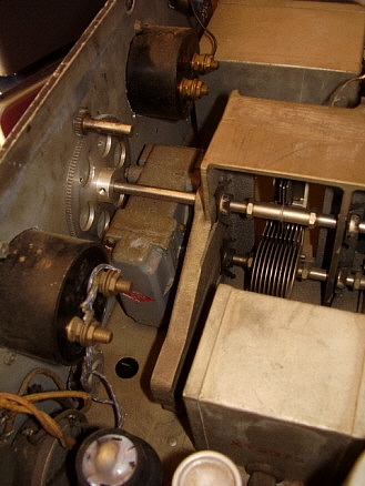 photo right: Who says you can't fit a National N-PW Gear Box into tight quarters and still have it work? Note the elaborate gear drive that was fit in to work the Band Spread condenser. |