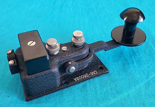 Corporation This J-38 was found in its original box and it, of course, is in near-mint condition. What is shown on the box indicates that it was packed 11/55 and had been built on a 1955 contract. The interesting thing is that the key base has the "L" embossed on the bottom indicating it's a "Lionel J-38" but the box printing indicates that it was built by Warren Manufacturing Company located in Littleton, Massachusetts. Reduced post-war demand for the J-38 must have meant fewer contracts were issued. Were there leftover parts made during WWII that were still available? Could Warren Mfg. Company have assembled these J-38s from surplus Lionel bases and other Lionel parts? Or, did Warren build new parts and copy the Lionel J-38 exactly,...right down to the "L" on the base? Another possibility is that Warren just repackaged surplus WWII "Lionel-built" J-38 keys. Whatever happened, the end result is a very nice hand key with an excellent feel and precise sending ability. Many of the WWII military transmitters used internal keying relays or sending relays that switched the antenna and receiver standby functions between transmit and receive as the key was operated. Although many military manuals will state that sending speeds can be over 20WPM, most of the time 15WPM is about the upper limit. This is mainly because of the relay's mechanical movement involved with the sending function. I use a J-38 key for most CW operations when using WWII vintage military transmitters. The J-38 just about can't be beat for the best "feel" and the best keying function when you absolutely must use a hand key. |