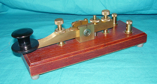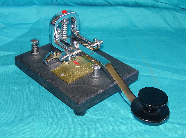 The Vibroplex Company Standard Hand Key The Vibroplex Company never made a hand key until recently. Vibroplex has designed a large hand key that uses some Vibroplex Original parts and some other parts specific for this design. As the advertising used to say, "Vibroplex never made a hand key but if they had this is what they would have produced." That's paraphrased, but you get the idea. This large hand key is still available from Vibroplex in Standard black finish base, blue finish base, chrome base or gold base. An earlier version is shown featuring the gray base that was being produced then (1990s.) While this Vibroplex hand key is beautiful and very well-built, it might be difficult to use depending on the individual operator. The problem is with the aural information versus sending action. As the key lever is pressed down the mechanical contact is silent but the upward return of the lever makes an easily audible "click." This is the exact opposite aural information heard when using a regular hand key. Looking at the frame, note that the return spring is acting on the rear-top of the lever applying a downward force. Standard USA key return springs are in front of the trunnion and are loading the bottom of the lever with an upward force. Most European hand keys use this same type of "behind the trunnion" return spring, although nearly all of those designs pull the level down from the bottom side. Just this slight change in the return spring location and its action is responsible for the loud "opposite" click. Most hand key users listen for the "click" and "feel" the return as their method of determining proper forming of the Morse characters when sending without a monitoring oscillator. With the "opposite" aural information being heard, confusion results. The solution is to use an oscillator monitor and ignore the "opposite" clicking. However, K6QY gave this hand key to me because he was frustrated with the "opposite" clicking and he didn't want to use an audio oscillator along with the key. |