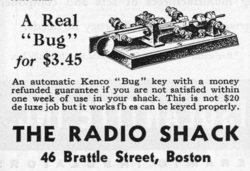 ![]() >>> The key came with two weights that usually had one placed on each side of the damper. Despite its rather cheap construction the Kenco Key does send very good Morse and it's comfortable to use (as the ad implies.) Kenco Keys date from the late-thirties up to about WWII. Selling price was $3.45 in 1938. Ad from QST January 1938. |