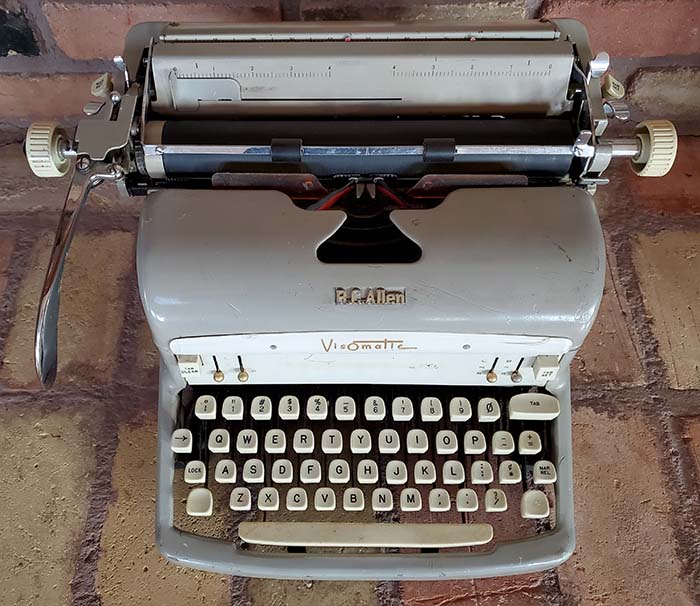 R. C. Allen Business Machines "Mill" Typewriter from 1962 R.C. Allen Business Machines built adding machines and also altimeters at one time. In 1950, they decided to expand their business by purchasing the Woodward Typewriter Company. The Vis-o-matic model came along around 1960. It provided the user the ability to easily view the line of type as it appeared on the paper. There were several adjustments that were available to allow almost anything to be typed. Even the platen could be removed easily for substitution of a "hard" platen for typing multiple-page carbon copies. R.C. Allen made several versions of typewriters, including "music typewriters" and special "ALL CAPITAL LETTERS" version that their advertising claimed were for typing bills and invoices. I haven't seen an advertisement for the "Mill" version that would have been listed as a "Communications" typewriter. This Vis-o-matic has all of the expected features of a "mill" - the "1" and the "Ø", the dual case with both cases being capital letters, limited other symbols,...all features found on communications typewriters. R. C. Allen quit making typewriters in 1967. It's estimated that in the seventeen years of building typewriters the company produced about one million machines. The Vis-o-matic shown is missing its rear cover so it doesn't have the model number or the serial number since the data plate was mounted there. Similar looking Vis-o-matics (regular typewriters, not Mills) date from 1962.