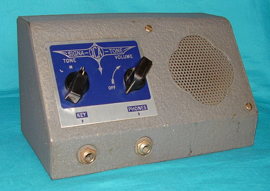 Code Practice Oscillators Insuline Corporation of America - Signa-Tone Bud Industries - Audio Oscillator Code Practice Oscillators were used for several purposes. First, when two or more people were trying to learn the code or were trying to improve their sending ability, the Code Oscillator allowed one person to send while the other received. The positions would be switched after a while to allow both individuals to send and receive. Unlike the buzzer practice sets, the Code Oscillators sounded more like a true CW signal (well, it depended on the oscillator) and probably made the transition to an actual "on the air" copy easier. These Code Oscillators could also usually be connected to the ham transmitter to act as a sending monitor - to make sure that your sent CW had the proper spacing and rhythm. The tube used was generally a 117L6 which was a diode rectifier and pentode in one envelope. Usually the speaker was a Hi-Z armature-pin speaker. Most had the option of using a headset for monitoring. Pitch of the tone was adjustable. Another use for the Code Practice Oscillator would be for those hams who would volunteer as examiners and would administer Novice exams and sometimes Conditional License exams. Obtaining a Novice License before 1980 required that the prospective ham to go out and find a licensed General Class or higher ham who would volunteer to give him the 5 wpm Code test. The first step was to for the volunteer examiner to obtain a 610 form from the FCC. Those forms used to have a section for the examiner to fill out confirming that he had given a 5 wpm Morse Code test to the applicant and that he had passed both sending and receiving. The requirement was to have at least one minute of solid copy and one minute of solid sending. Next, the volunteer examiner would send in the completed 610 form to the FCC. Six weeks later, the examiner would receive the applicant's Novice written test via the mail at which time he would contact the applicant to come over and take the test. The completed test was sent into the FCC again and hopefully, six weeks later, the applicant would receive his Novice license and call letters (again, via the mail.) This arduous and lengthy procedure started to change as the ARRL Volunteer Examiner program was started in the 1980s. As both the code test and the written theory test could be administered on the same date the time to acquire the license was reduced. Over time, the FCC has greatly improved their turnaround time on license processing also. Today, temporary license permits are issued upon successful completion of the exam, the new licensee will show up on the FCC website in a few days and the "hard copy" license can be printed from the FCC website. Shown in the photo top right is the ICA Signa-Tone (ICA was the Insuline Corp. of America.) This is a very nice performing Code Practice Oscillator with a variety of tones and strong volume. The Bud Audio Oscillator is very similar in design to the Signa-Tone and dates from around the same time period - the late-forties to mid-fifties. Bud Industries is famous for their metal cabinets and metal relay racks. Bud Industries has been in business since 1928. |